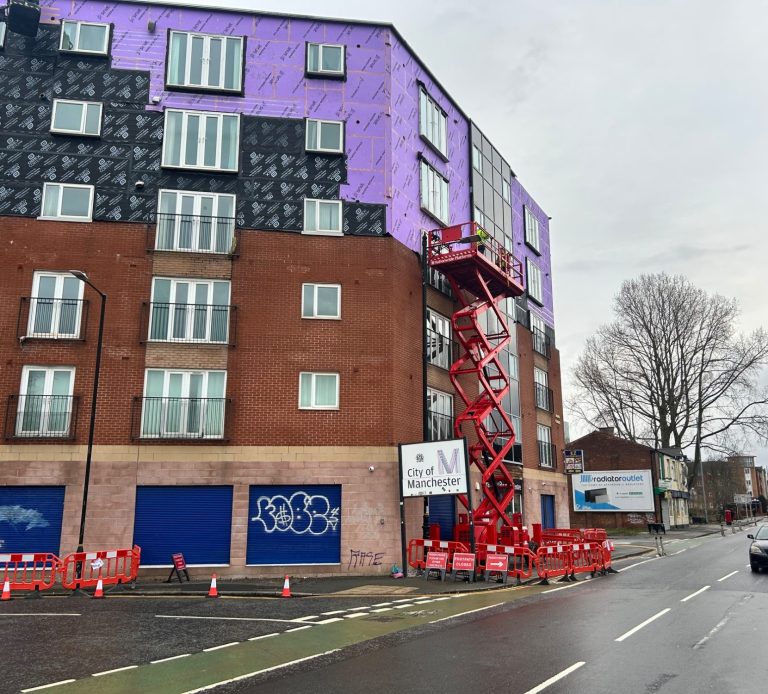 Work on the exterior is well underway. The old cladding is being removed, and new Weatherboard is going up to keep the building protected while construction continues. The new cladding and fixings have now been ordered, and the nearby footpaths are temporarily closed so the MEWPs can safely reach the highest parts of the façade.